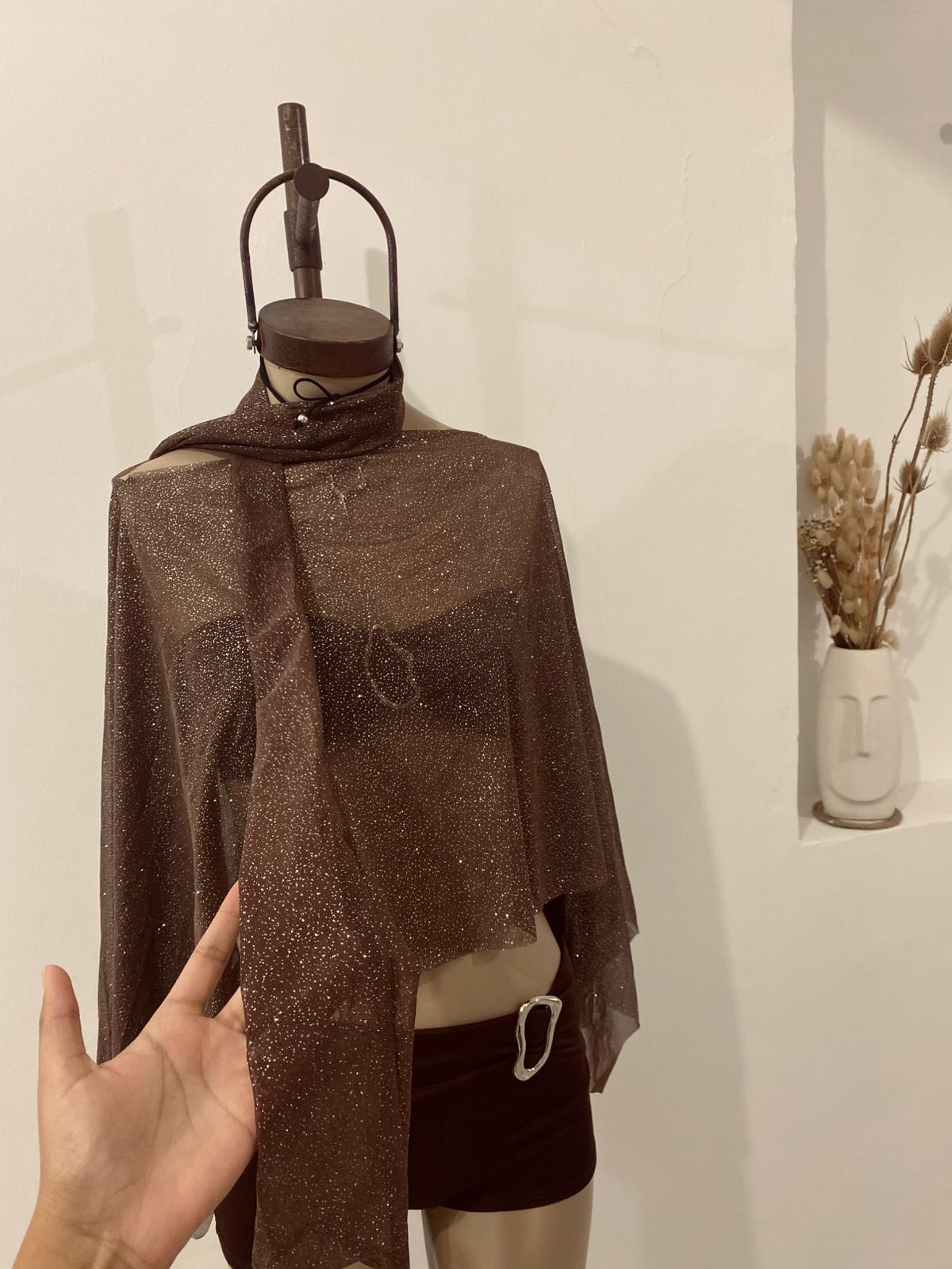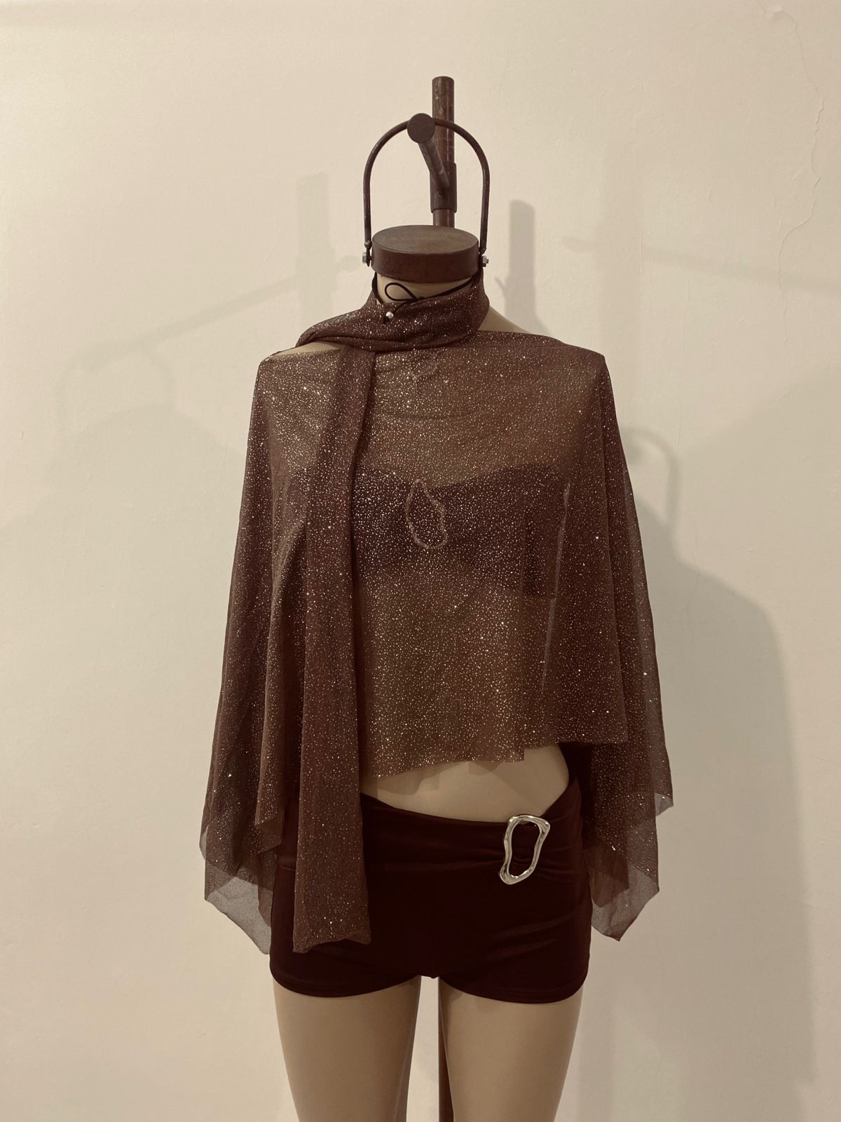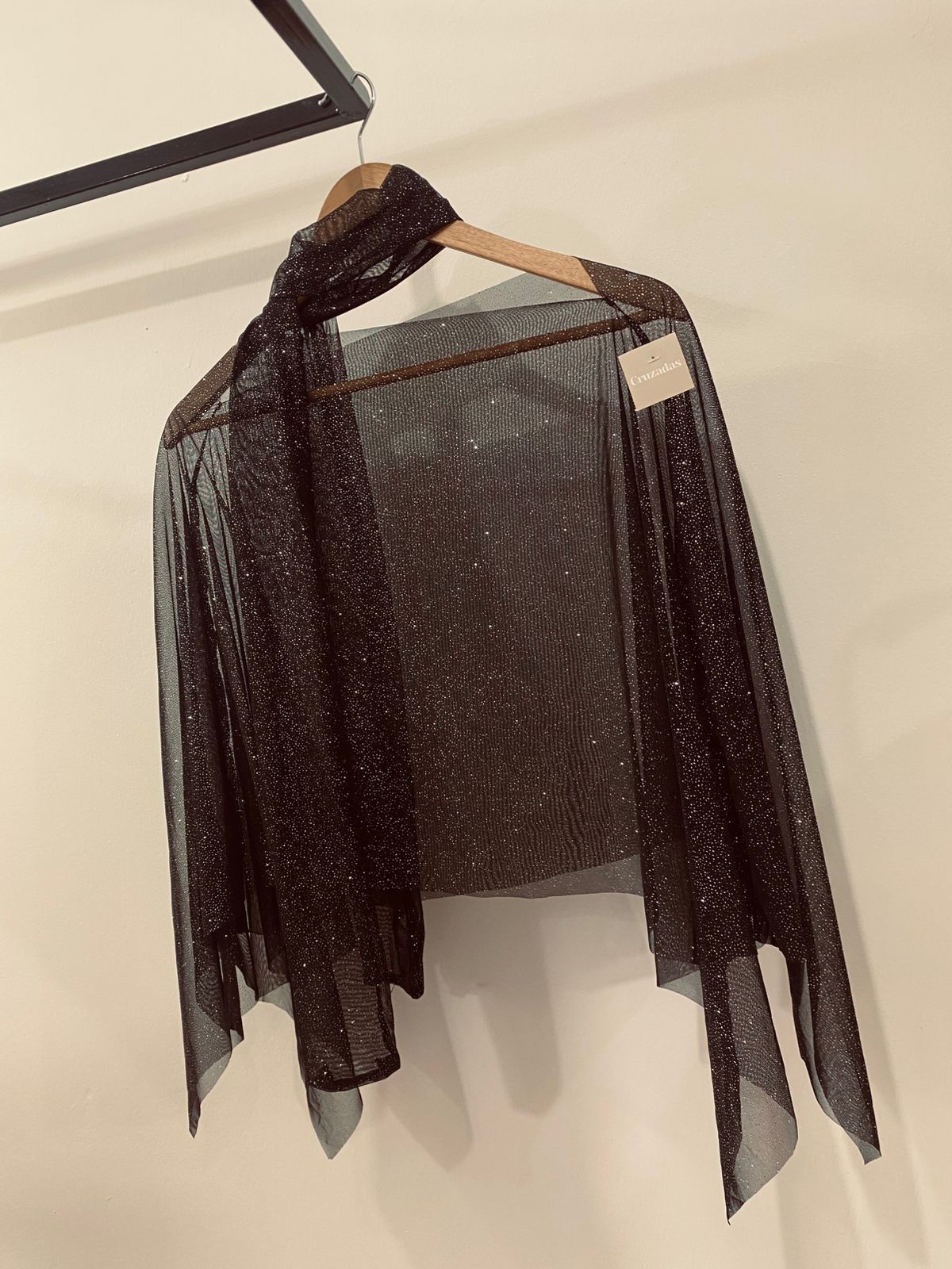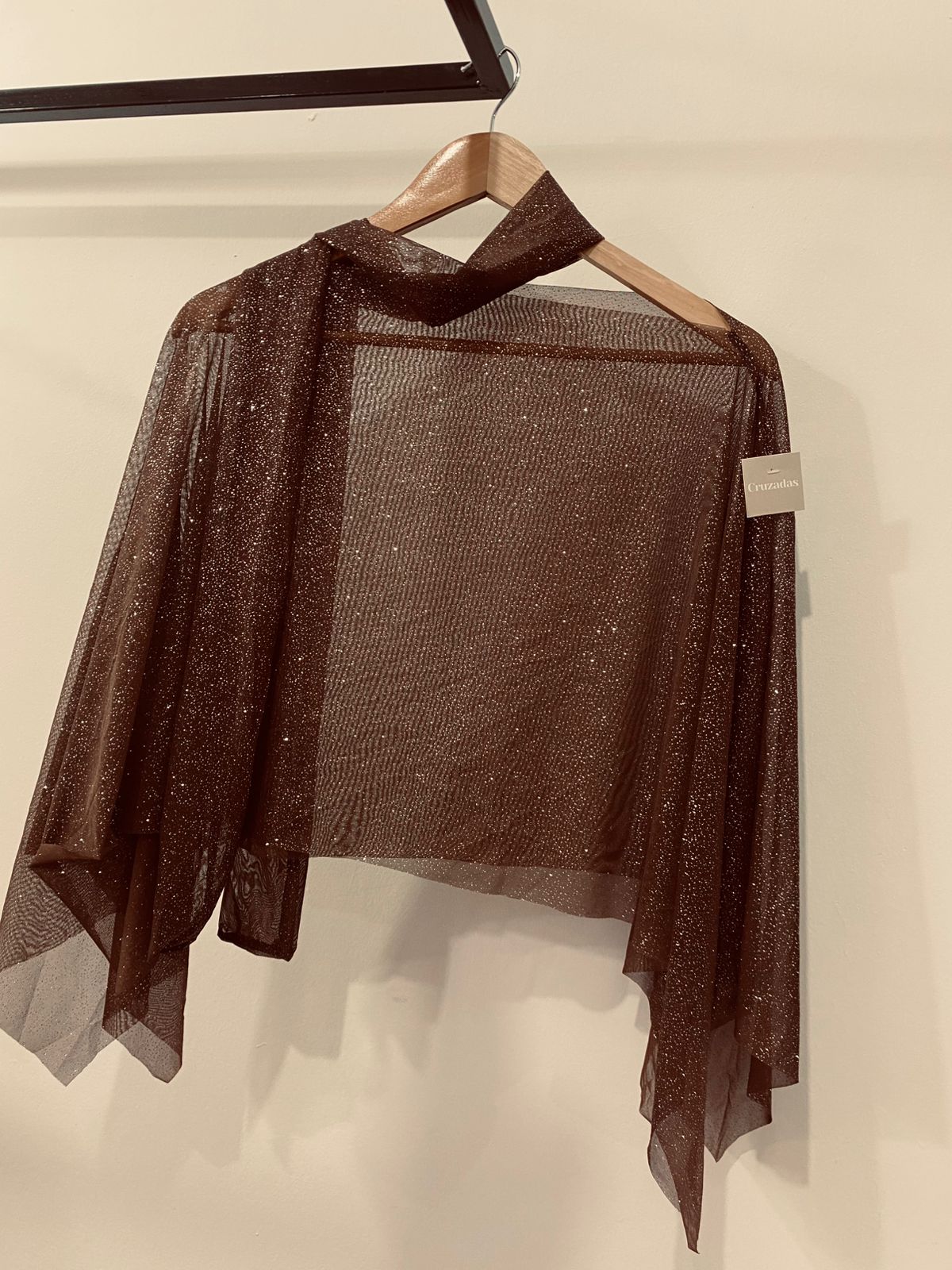 Capa con brillos, con corbatin incluido. Talle único hasta un 4.