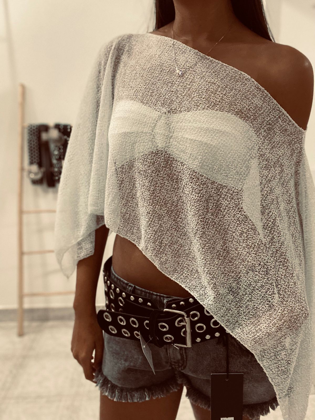 Capa/sobretodo un hombro de tejido. Talle único, super amplio