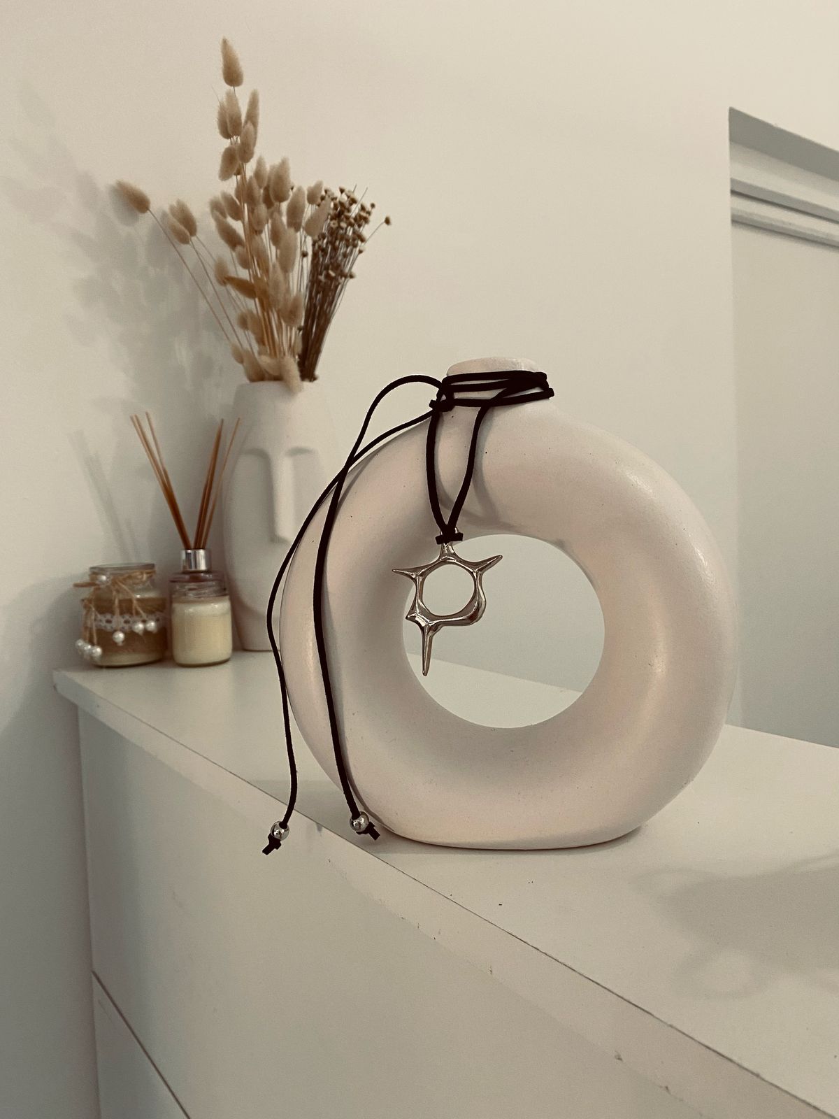 Collar de hilo gamuzado con dije.