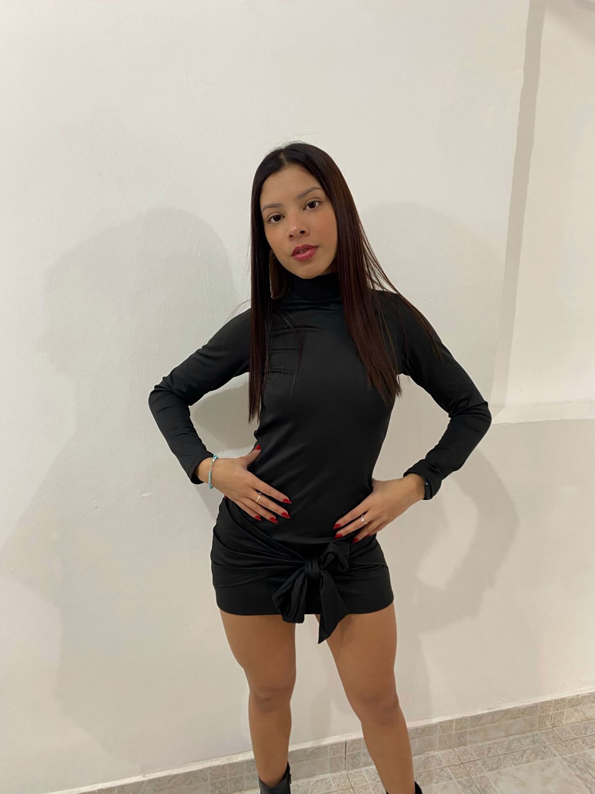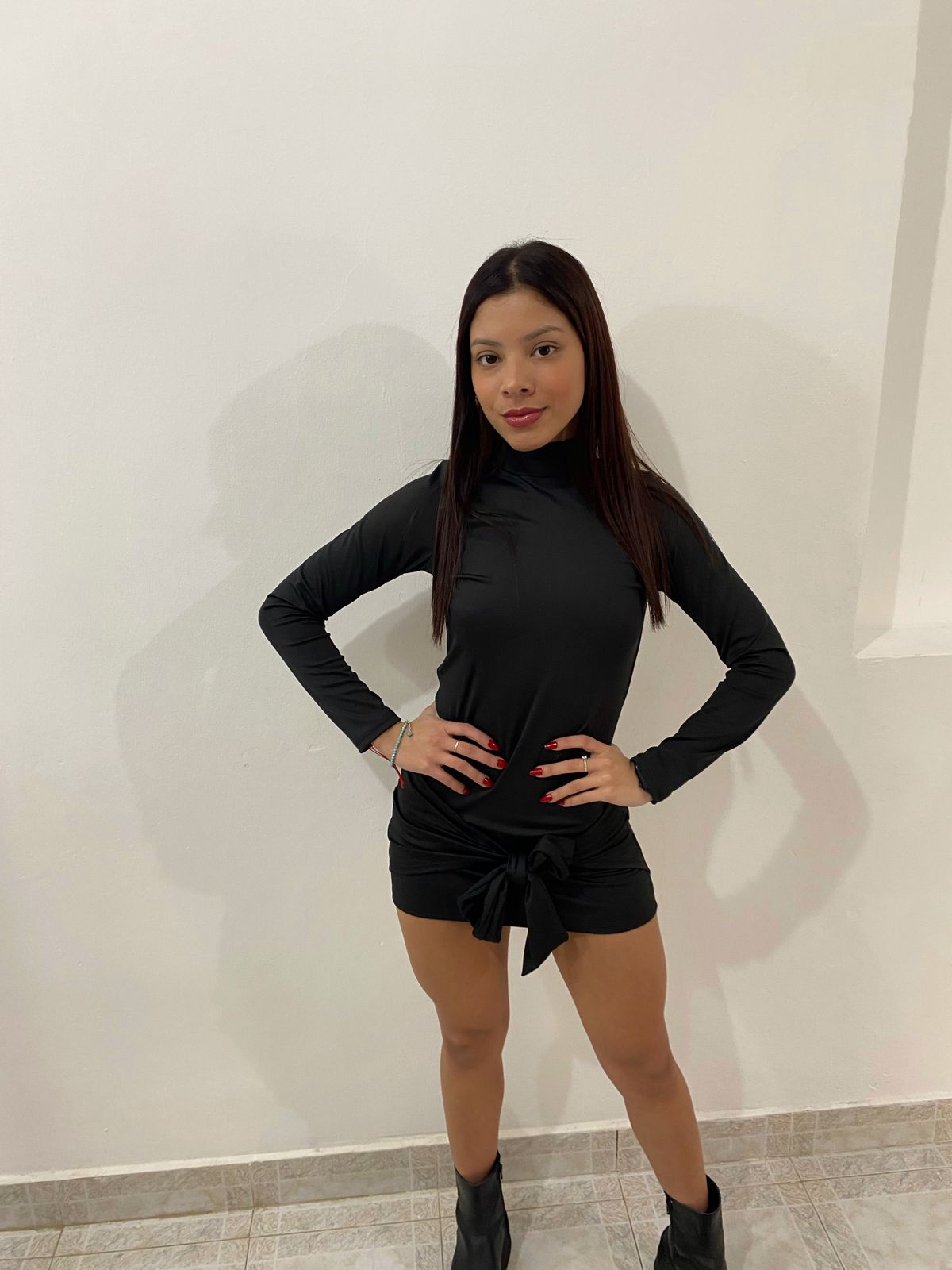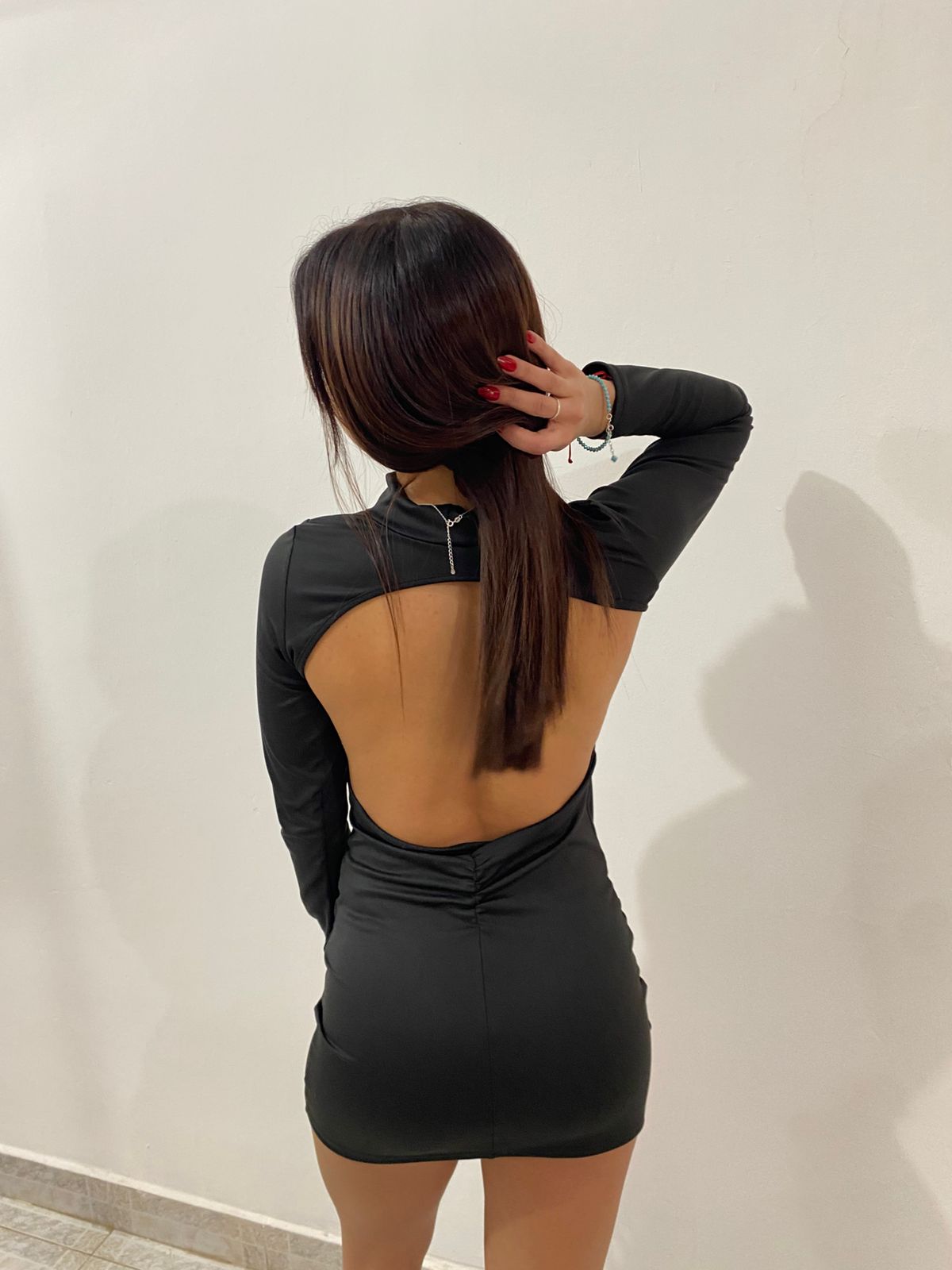 Vestido mangas largas con espalda descubierta. Tela lycra gruesa, excelente calidad. Talle único para un S/M.