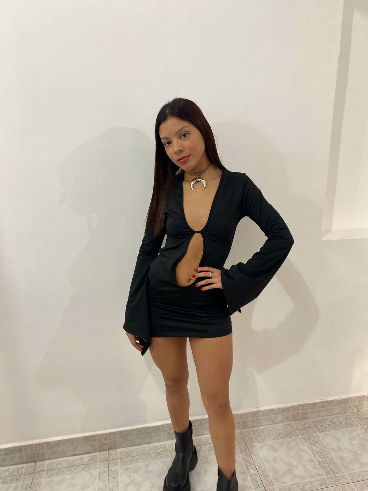 Vestido mangas largas oxford, con abertura en el frente, de lycra, talle único para un S/M, va hasta un talle 3.