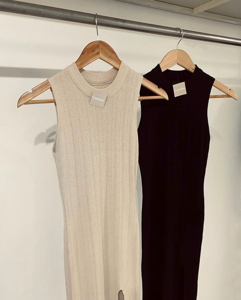 Vestido de hilo largo cuello redondo y con un pequeño tajo. Talle único va hasta un L.