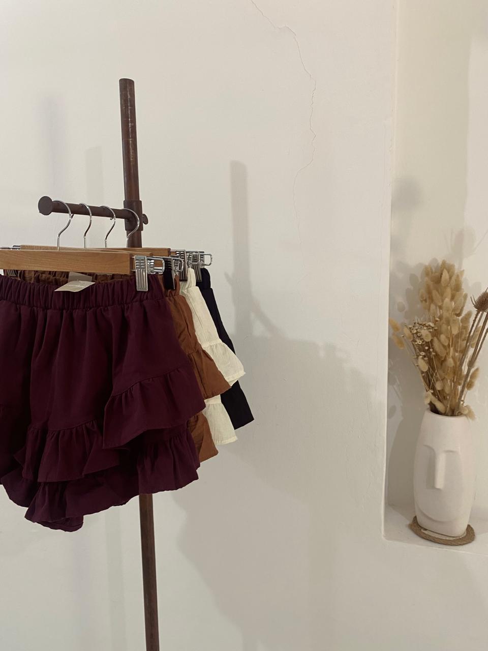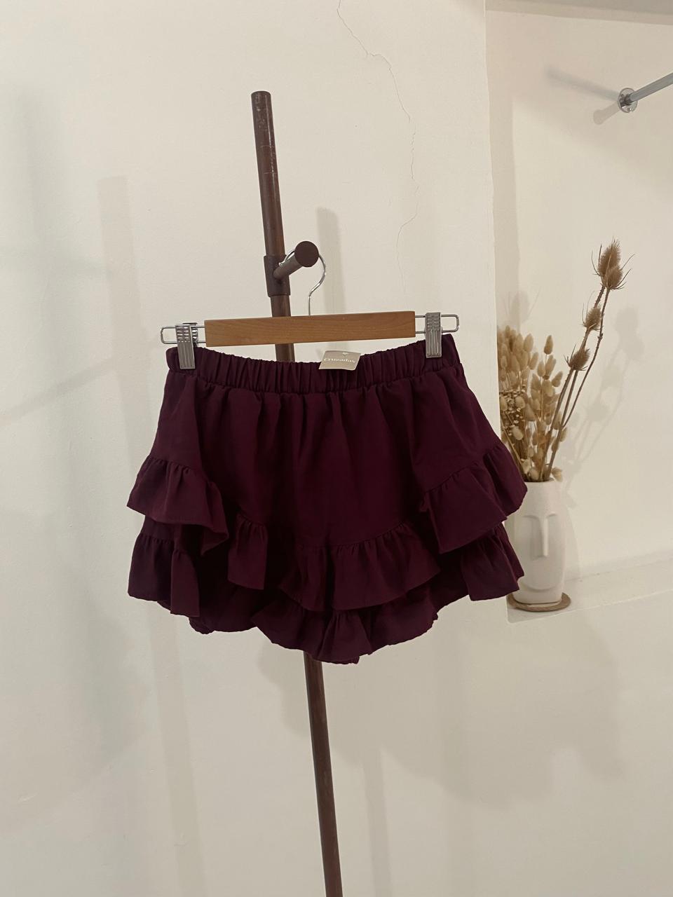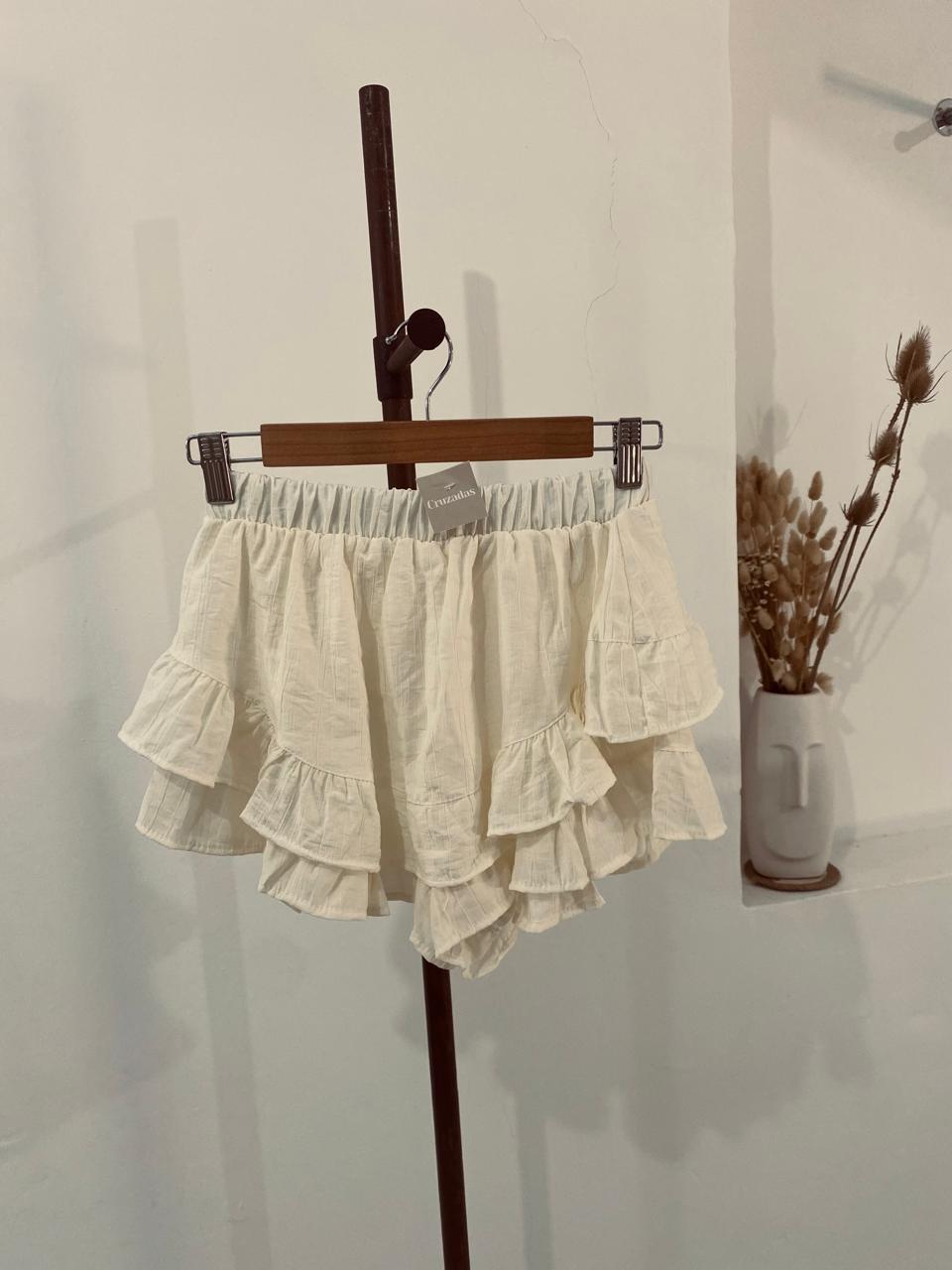 Short/pollera de volados, con elástico en la cintura. Talle único va hasta un 40.